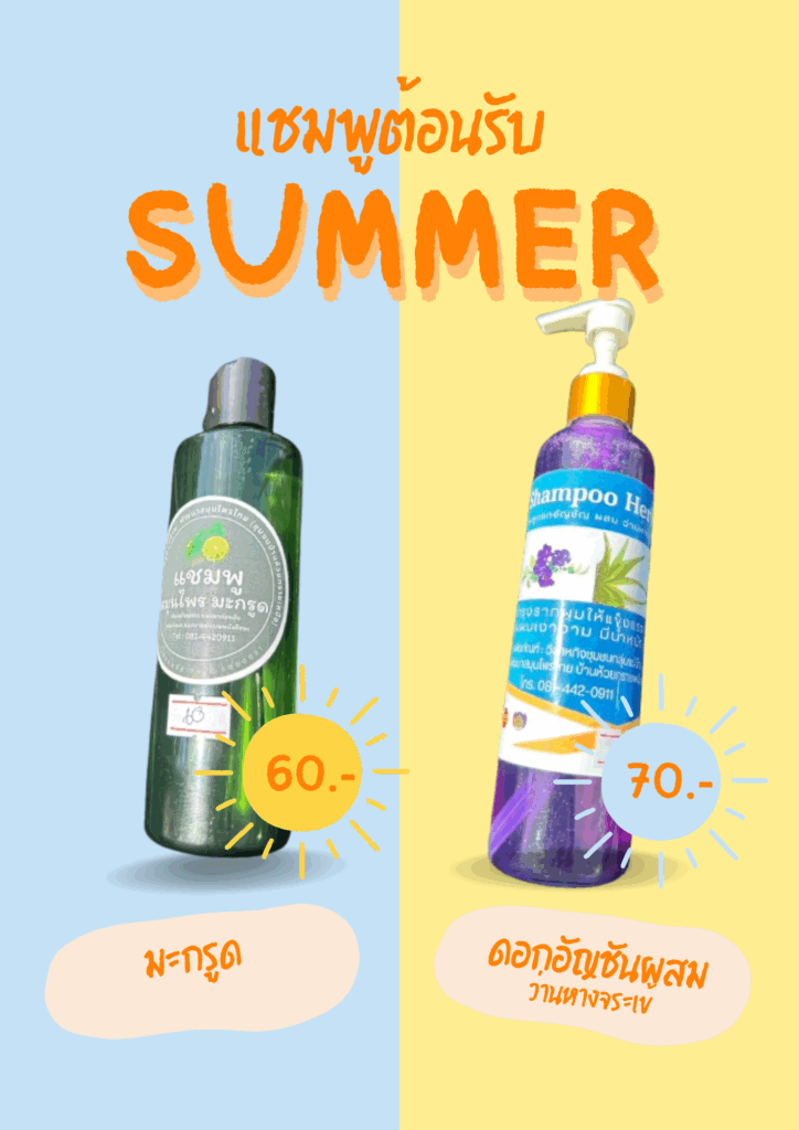 Posted on 27/05/202527/05/2025 by admin — Leave a commentแชมพูต้อนรับซัมเมอร์🌞✨ 🍋 แชมพูมะกรูดช่วยลดรังแค บำรุงรากผมให้แข็งแรง 💜 แชมพูดอกอัญชันผสมว่านหางจระเข้ลดผมร่วง ผมนุ่มเงางาม เย็นสบายหนังศีรษะ 💦 ซัมเมอร์นี้ใคร ๆ ก็อยากผมหอม สดชื่น ไม่มันเยิ้ม!ลองเลย แล้วจะหลงรักความธรรมชาติของผมคุณ 🌿